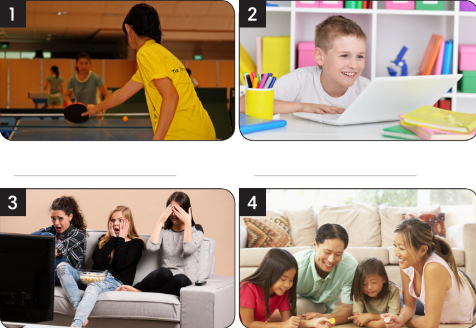 (Nhìn vào những bức tranh. Đặt tên cho hoạt động giải trí trong mỗi bức tranh.)