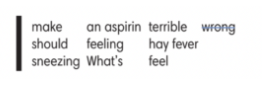 B: I’ve got a headache and I’m sneezing a lot. I think I’ve got an aspirin.