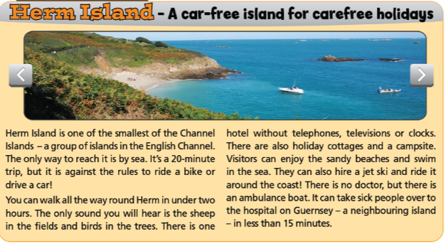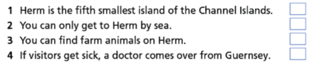 3. Bạn có thể tìm thấy nông trại động vật trên Herm.(Đoạn 2, dòng 3)