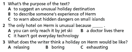 1. Read the text and decide if the statements are R (Right), W (Wrong) or DS (Doesn’t Say). 2. Complete the advert with the information from the text. 3. Read the text. For questions (1-3), choose the correct answer (A,B or C).