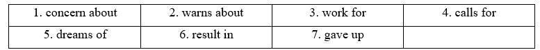 (Hoàn thành câu với một động từ và một giới từ dưới đây. Sử dụng dạng đúng của động từ.)