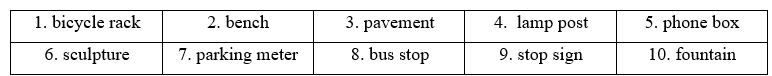 (Hoàn thành định nghĩa về những thứ bạn có thể tìm thấy trên đường phố.)