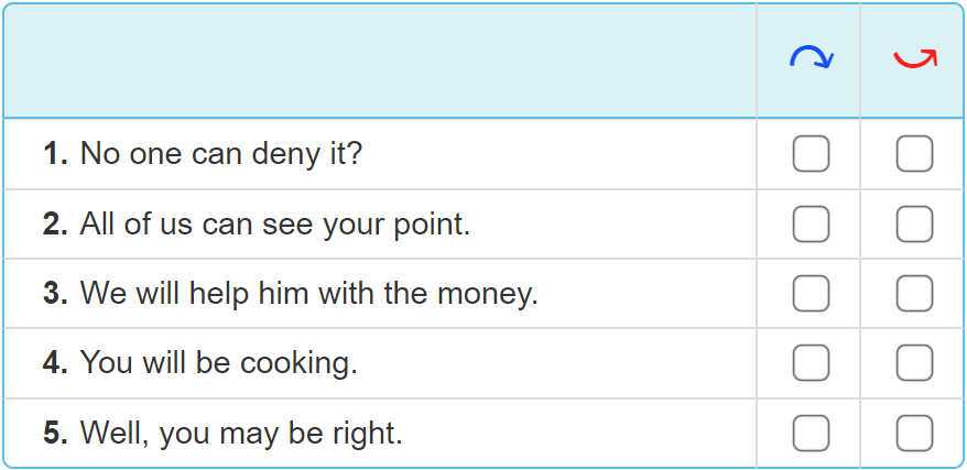 6. Mark Mike’s sentences with falling (agreeing) or rising (disagreeing) arrows. Then listen and check.