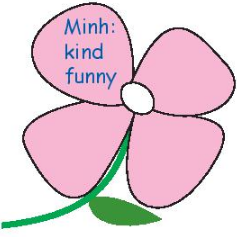 (Trò chơi: Bông hoa tình bạn. Làm việc theo nhóm. Viết hai tính từ chỉ tính cách cho một thành viên của nhóm.)