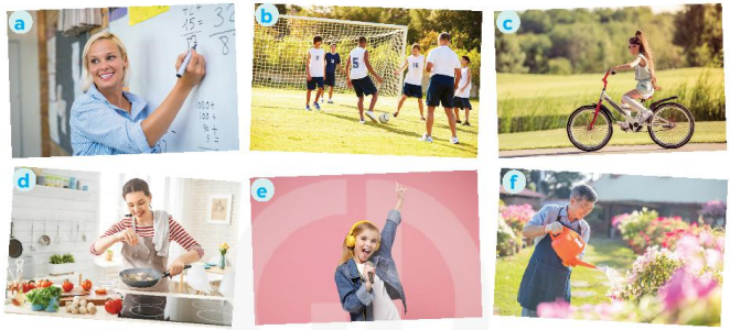 1. Work in pairs. Tell your partner what the people in the pictures are doing.