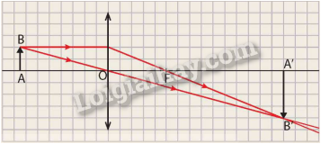 a) Sử dụng giấy kẻ ô và vẽ ảnh của vật AB qua thấu kính theo tỉ lệ 1 cạnh của ô vuông tương ứng với 1 cm như Hình 10.6.