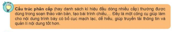 D. Cấu trúc này được sử dụng nhiều trong soạn thảo văn bản, tạo bài trình chiếu.