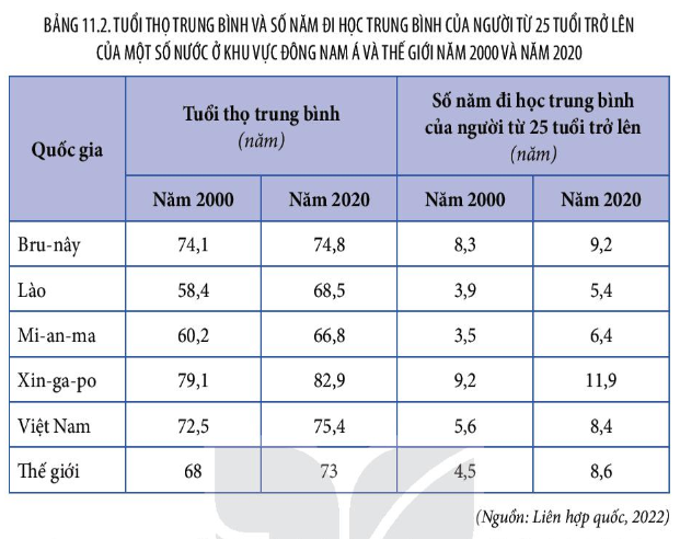 – Trong giai đoạn 2000 – 2020, số năm đi học trung bình của người từ 25 tuổi trở lên ở các nước Đông Nam Á còn thấp hơn so với các nước phát triển, tuy nhiên, tình trạng này đang dần được cải thiện. Ví dụ như: ở Lào: từ 3,9 năm (2000) đã tăng lên 5,4 năm vào năm 2020; ở Việt Nam từ 5,6 năm (200)) tăng lên 8,4 năm vào năm 2020,…