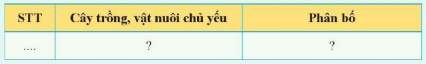 Quan sát hình 11.4, hãy hoàn thành bảng thông tin phân bố các cây trồng, vật nuôi chủ yếu ở Đông Nam Á theo mẫu sau vào vở ghi.