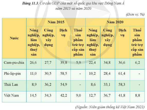 + Cơ cấu kinh tế ở phần lớn các nước Đông Nam Á có sự chuyển dịch theo hướng tích cực.