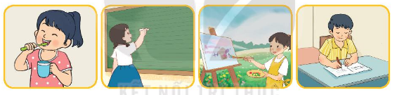 Em quan sát kĩ các bức tranh và dựa vào mẫu để đặt câu cho phù hợp.