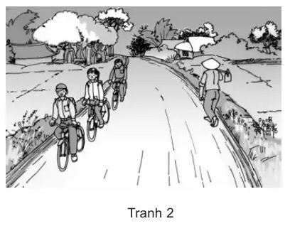 – Tranh 2: các bạn học sinh đi đúng phần đường, không dàn hàng và không vi phạm luật an toàn giao thông.