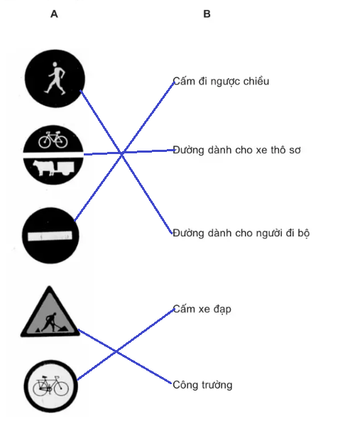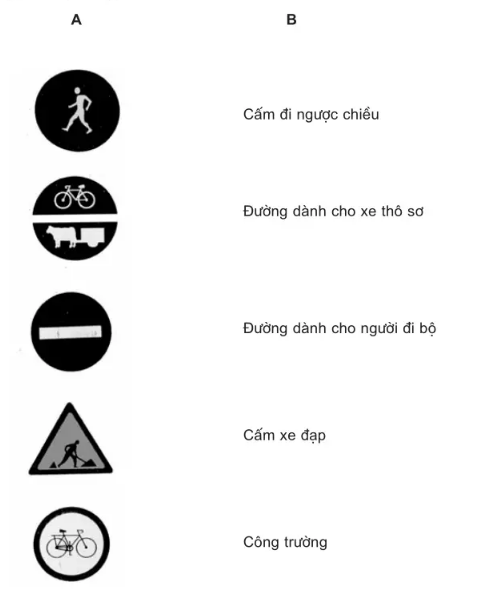 Hãy nối biển báo giao thông ở cột A với tên biển báo giao thông ở cột B cho phù hợp