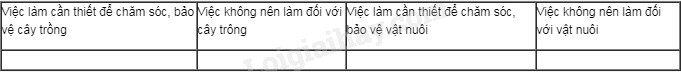 Em hãy viết những việc làm phù hợp với yêu cầu trong các cột.