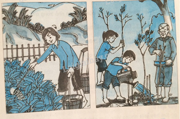 – Tranh 3: Tưới rau – chăm sóc rau.