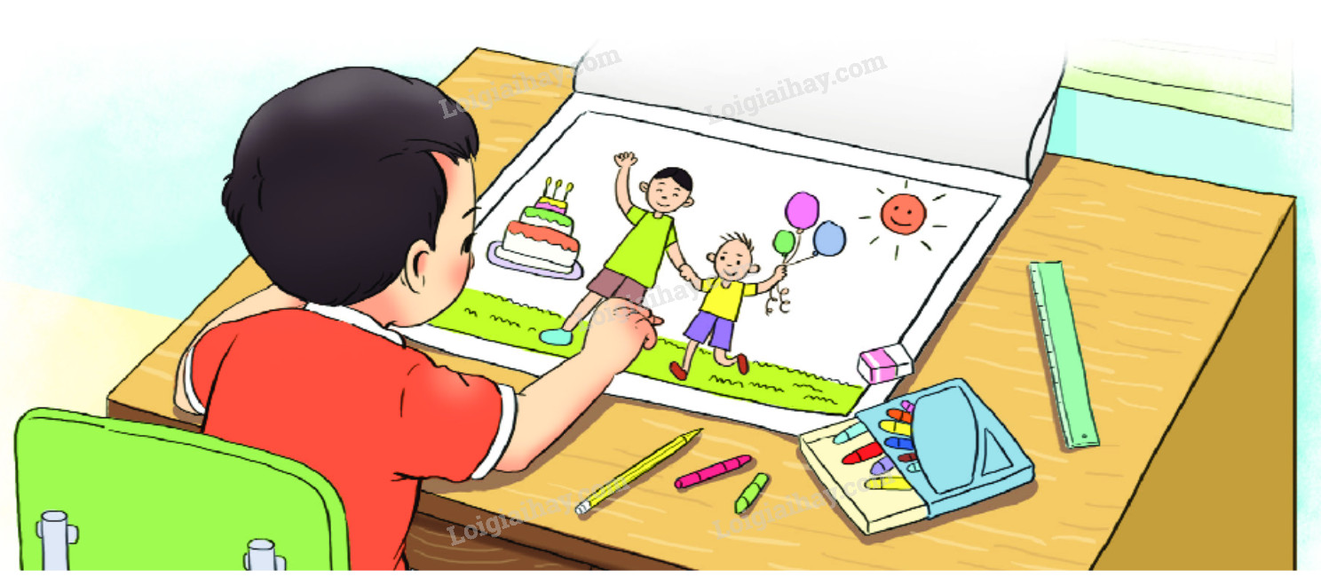 – Lựa chọn một đồ vật muốn tả: màu vẽ, giấy vẽ, cục tẩy, bút chì,…