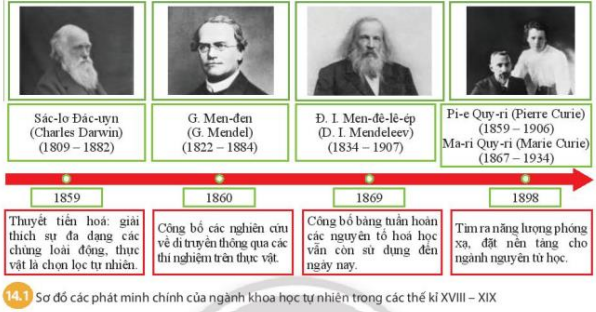 + 1859: Darwin tìm ra thuyết tiến hóa: giải thích sự đa dạng các chủng loại động, thực vật là chọn lọc tự nhiên