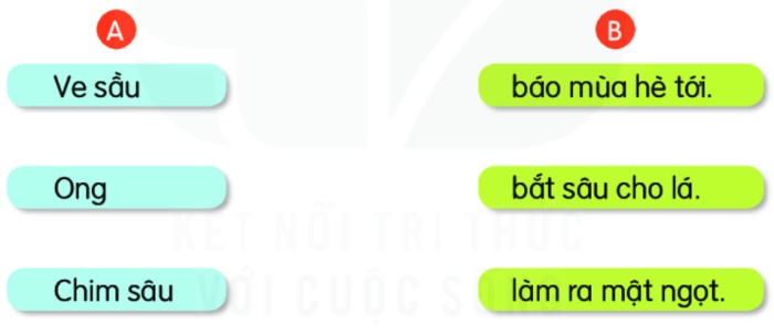 Câu 2: Kết hợp từ ngữ ở cột A với từ ngữ ở cột B để tạo câu.