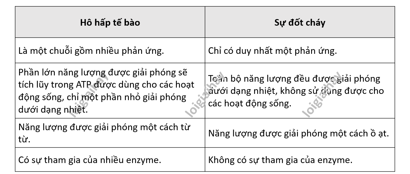 So sánh quá trình hô hấp tế bào với sự đốt cháy.