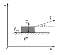 Theo định luật II Newton ta có: \(\overrightarrow F + \overrightarrow P + \overrightarrow N + \overrightarrow {{F_{mst}}} = m\overrightarrow a \).