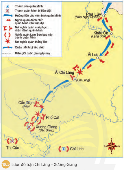 Dựa vào lược đồ 19.4, 19.5 và thông tin trong bài, em hãy trình bày tóm tắt diễn biến trận Tốt Động- Chúc Động và trận Chi Lăng- Xương Giang.