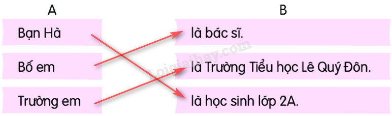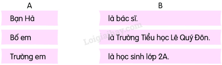 Câu 2: Kết hợp từ ngữ ở cột A với từ ngữ ở cột B để tạo câu giới thiệu