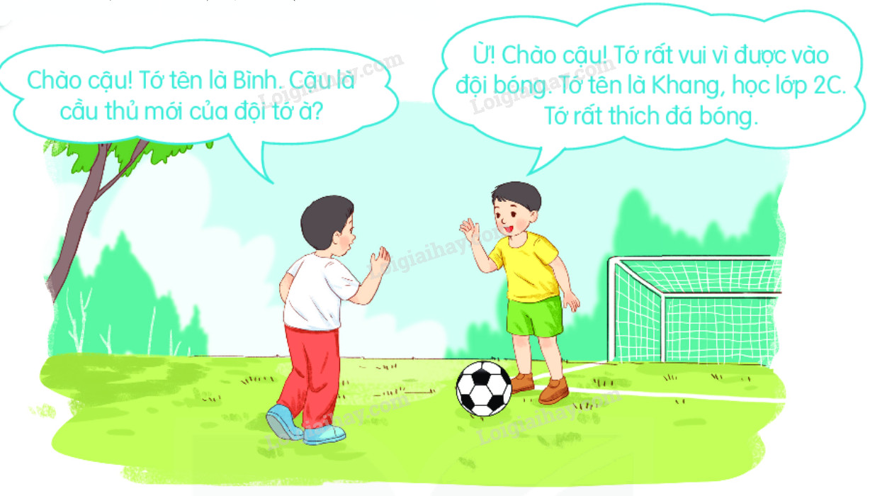 a. Bình và Khang gặp nhau và chào nhau ở sân bóng.