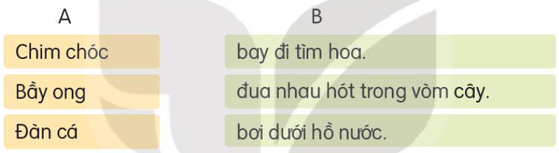 Ghép từ ngữ ở cột A với từ ngữ ở cột B để tạo câu. Chép lại các câu đó.