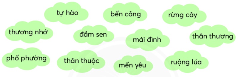 b. – Chỉ sự vật có ở quê hương: bến cảng, rừng cây, đầm sen, mái đình, phố phường, ruộng lúa
