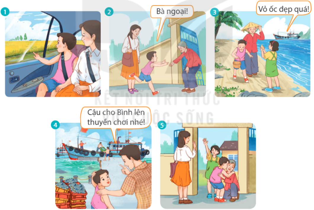 – Tranh 2: Khi về quê, Bình nhào vào lòng bà ngoại.