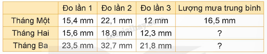 Lượng mưa trung bình = tổng lượng mưa 3 lần đo : 3