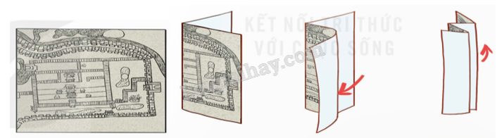 b) Bạn Việt gấp tấm bản đồ lại như hình dưới đây. Sau khi gấp tấm bản đồ được một hình chữ nhật nhỏ hơn. Diện tích hình chữ nhật nhỏ là ….. dm2.
