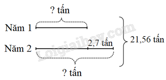 Trong hai năm, trang trại của bác Tâm bán được tất cả 21,56 tấn cá chẽm. Biết số tấn cá chẽm bán trong năm thứ hai nhiều hơn năm thứ nhất là 2,7 tấn. Tính số tấn cá chẽm mà trang trại của bác Tám bán được trong mỗi năm.