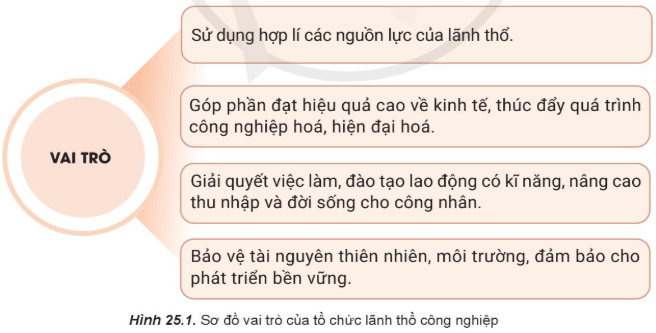 Đọc thông tin và quan sát hình 25.1, hãy nêu quan niệm về tổ chức lãnh thổ công nghiệp. Lấy ví dụ cụ thể về vai trò của tổ chức lãnh thổ công nghiệp.