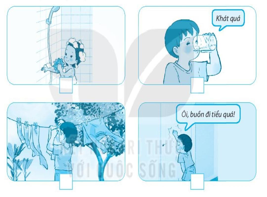 Viết vào chỗ (…) tên và tác dụng của các việc làm để chăm sóc, bảo vệ cơ quan bài tiết nước tiểu được thể hiện trong mỗi hình sau: Theo dõi thói quen uống nước của những người thân trong gia đình em và cho biết họ đã uống đủ nước hay chưa. Đánh dấu x vào trước ô trống dưới các hình thể hiện những việc nên làm để chăm sóc, bảo vệ cơ quan bài tiết nước tiểu. Khoanh vào chữ cái trước việc không nên làm để chăm sóc, bảo vệ cơ quan bài tiết nước tiểu. Viết tiếp vào chỗ (…) để hoàn thành các câu d