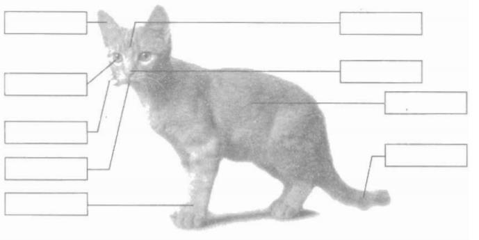 Viết vào ô trống tên các bộ phận của con mèo.