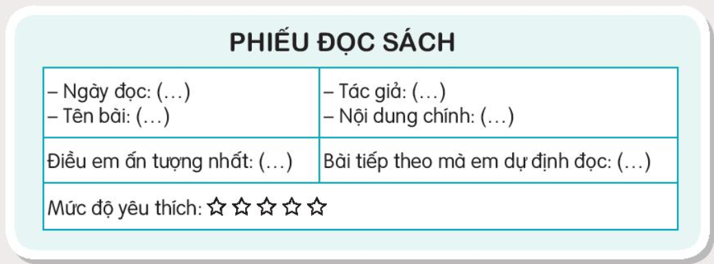 Em lựa chọn một bài đọc mà em yêu thích và điền theo mẫu.