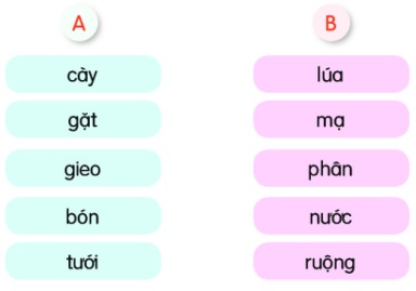 Câu 1: Kết hợp từ ở cột A với từ ở cột B để tạo từ ngữ chỉ công việc của người nông dân.