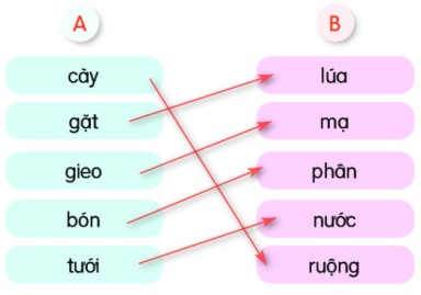 Câu 1: Kết hợp từ ở cột A với từ ở cột B để tạo từ ngữ chỉ công việc của người nông dân.