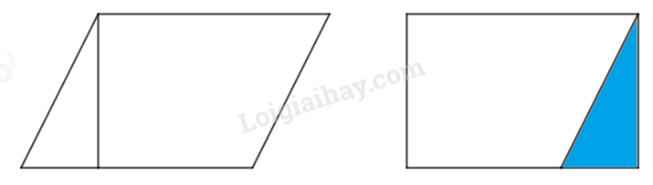 Vẽ một hình bình hành trên giấy kẻ ô vuông như hình dưới đây. Sau đó, vẽ một đường thẳng chia hình bình hành đó thành hai phần để cắt và ghép thành một hình chữ nhật.
