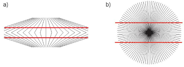 Hai đường màu đỏ trong mỗi hình dưới đây có phải là hai đường thẳng song song hay không?