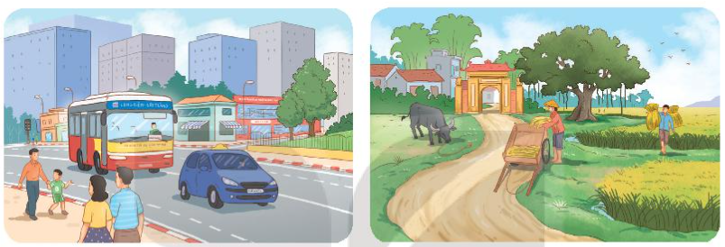 Tìm từ ngữ chỉ sự vật và từ ngữ chỉ đặc điểm của sự vật thường thấy ở thành thị hoặc nông thôn.