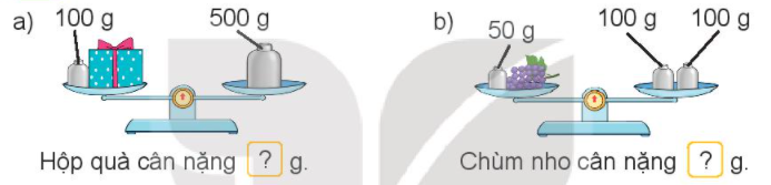 – Cân nặng của hộp quà = Khối lượng ở đĩa cân bên phải – khối lượng quả cân ở đĩa bên trái.