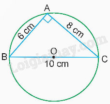 Cho hình tam giác vuông ABC và hình tròn tâm O với kích thước như hình vẽ bên.
