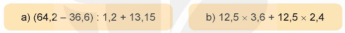 a) (64,2 – 36,6) : 1,2 + 13,15 = 27,6 : 1,2 + 13,15