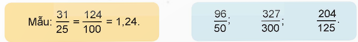 c) Chuyển các phân số sau thành số thập phân (theo mẫu).