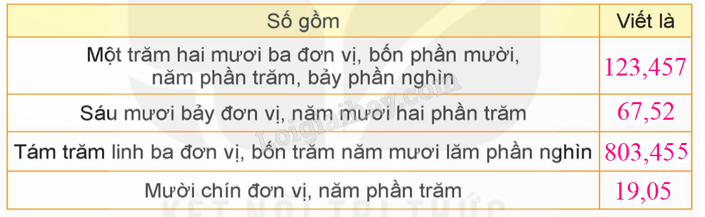 Muốn viết (hoặc đọc) số thập phân, trước hết viết (hoặc đọc) phần nguyên, viết (hoặc đọc) dấu phẩy, sau đó viết (hoặc đọc) phần thập phân.