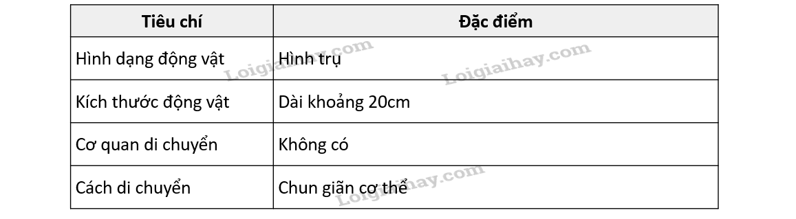 Dựa vào loài động vật em được quan sát, ở câu hỏi này, cô hoàn thành bảng theo những đặc điểm đã quan sát được ở loài giun đất.