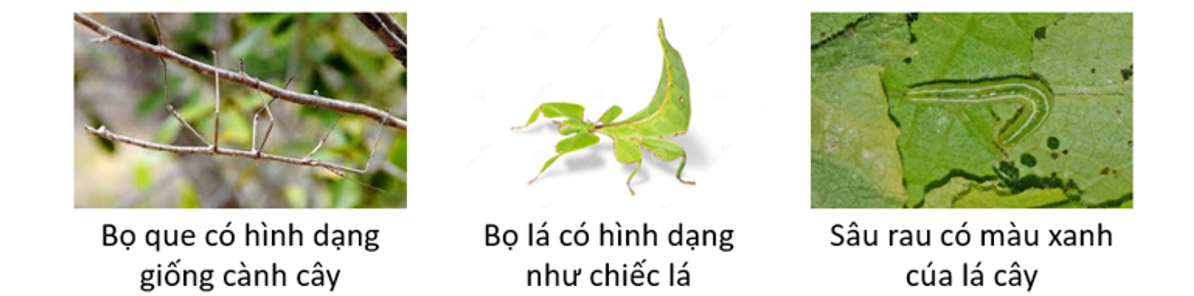 Nhiều loài động vật có hình dạng giống với vật nào đó ở môi trường, màu sắc giống với màu môi trường. Quan sát hình sau và cho biết đặc điểm này có lợi ích gì đối với động vật?