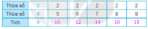 Dựa vào bảng nhân 2 để tính tích của các phép nhân.